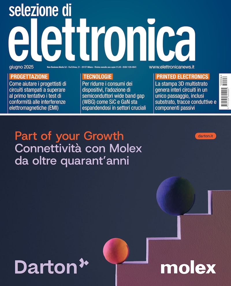 Selezione di Elettronica è il mezzo ideale di aggiornamento sui risultati e le esperienze raggiunte nella progettazione elettronica, sulle tendenze in atto nel mercato informando con focus e approfondimenti tecnici, note applicative e recensioni su tutte le ultime novità di prodotto rilasciate sul mercato.